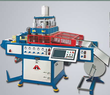 打杯機:一般輻射加熱結合接觸加熱;正壓吹起成型結合真空成型;一般 有金屬輔助調溫柱塞(上模);成型時封邊,拉伸吹氣(吸